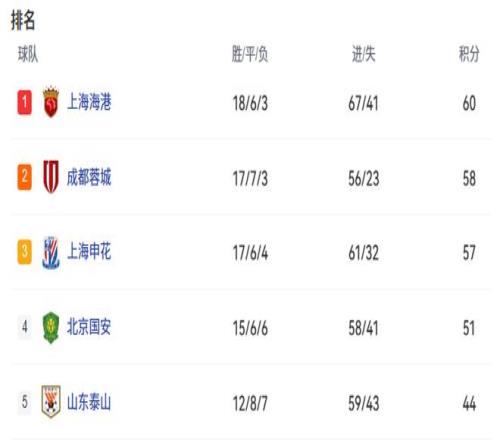 首先,第一名的海港队或将直接退出中超争冠行列!目前,海港队积60分,本轮比赛,若蓉城队和申花队都赢球,那么,海港队将跌到第三名。最后2轮比赛,海港队将面对浙江队和大连英博。