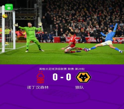 北京时间2月12日英格兰足球顶级联赛 联赛 第26轮,诺丁汉森林主场对阵狼队。最终比分诺丁汉森林 0-0 狼队。